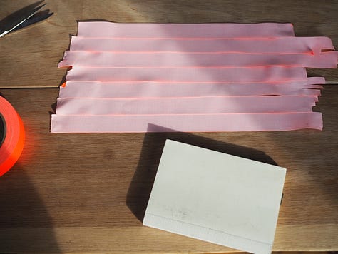 gaffers tape ‘fabric’ -the same height (or slightly larger), and 2-3 inches longer than your open journal